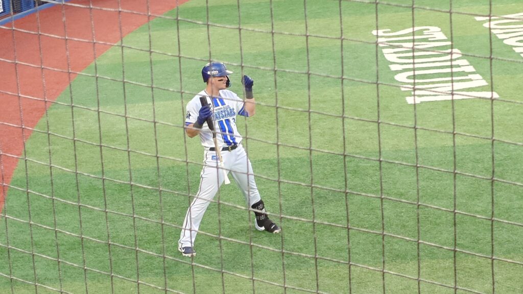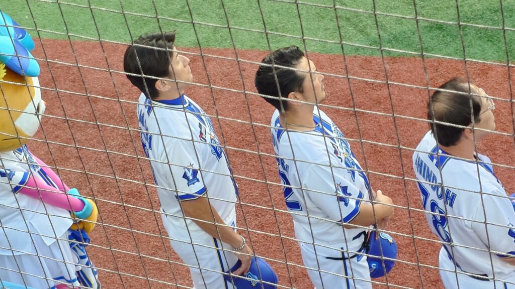 選手が近いのはもちろん、打球音、ミットにボールが収まる音、(試合展開のせいか元気がなかったが)ベンチの声なども聞こえ、試合展開は残念過ぎたが楽しめた。特にリチャードの死球はエルボーガードに当たったが、凄い音だった。防具があってもあれだけの衝撃であれば当然痛いし、怒るのも無理はないと思った。ホームランがなかったのも残念で、乾いた良い音をもっと聞きたかった。