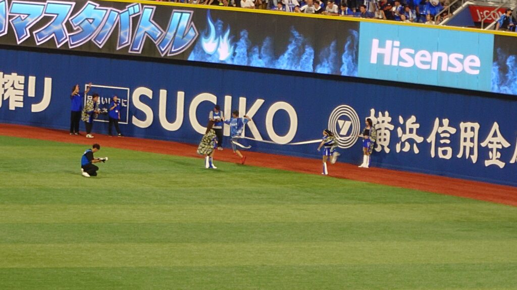 この日はチャレンジャーチームの勝利。ハマスタバトルも漢祭の衣装で走るアンカーのAKI