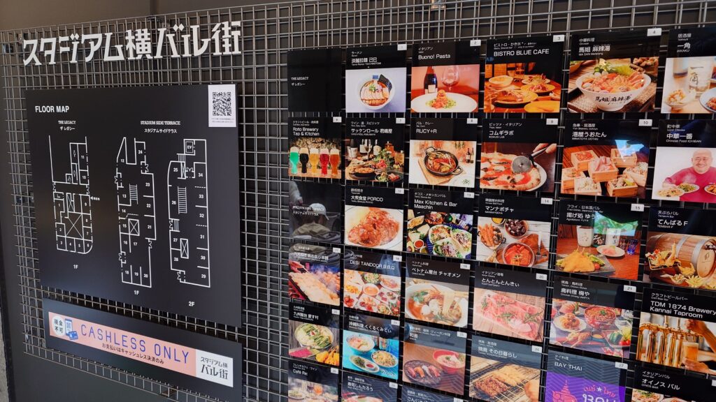 スタジアム横バル街の案内板。2階も含めるとかなりの店舗数。