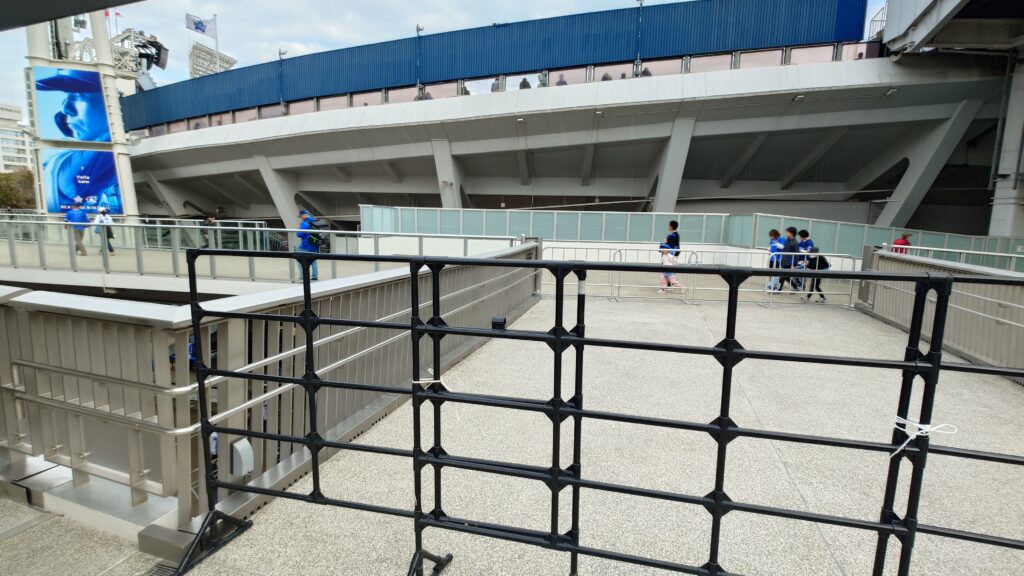 Yデッキのオープン後は、ハマスタ側の回遊デッキは入場後のエリアになるので、直接BASEGATE横浜関内からの歩道橋から入れない。帰りは直接BASEGATE横浜関内側へ行けるのかも知れない。
