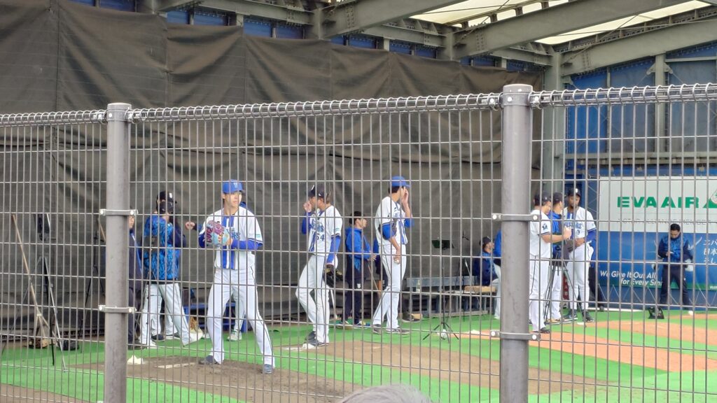 11時ごろに球場に着いて、まずはブルペンへ。ちょうど投手陣が投球練習をしているタイミングだった。
