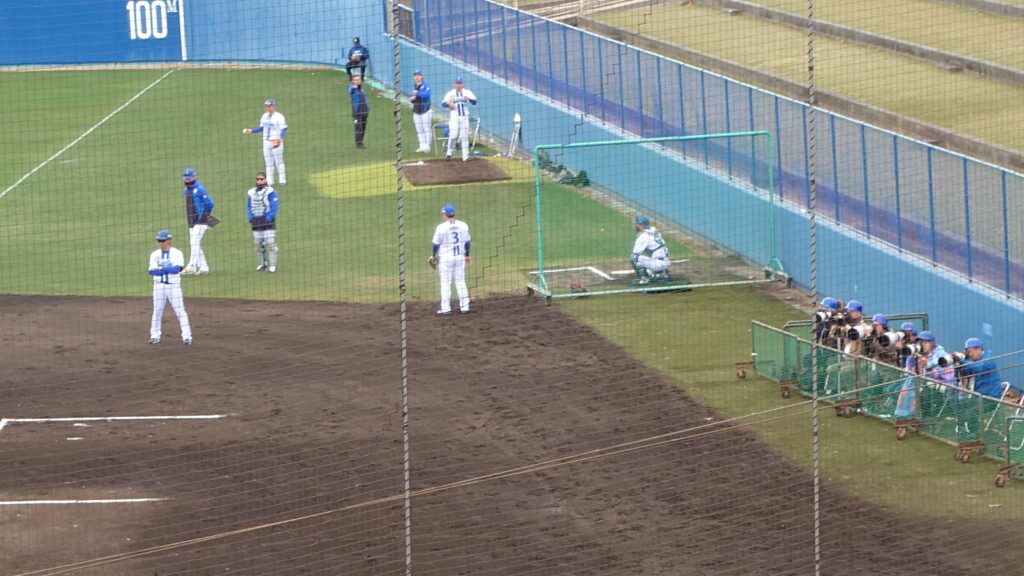 横浜DeNAベイスターズの春季キャンプ第2クール最終日は、午前中は全体練習を行い、12:30から青白戦を行った。嘉手納からルーキーの野手4名を含めて多数の選手が参加。2-0というロースコアの展開となり、両チームの好守備が目立つ試合となった。