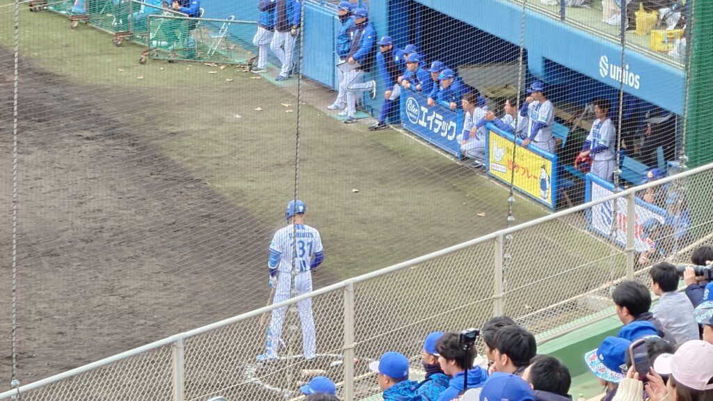 試合後に相川監督と村田二軍監督がバックネット前で話し合っていた。この日は、二軍のコーチも多数来ていたし、ミーティングは行われたと思うが、試合を受けての今後のことを話していたかも知れない。村田二軍監督は試合中、ベンチではなくバックネット裏の最前列にあるチームスタッフ専用エリアで試合を観ていた。