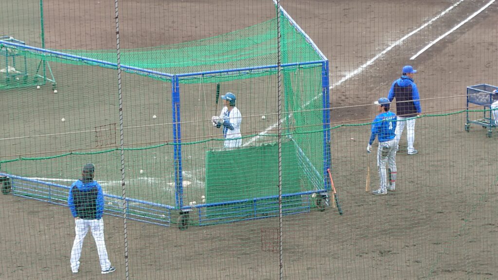 バッティング練習は、最初は梶原だけで、ひたすら打ち込んでいたが、守備練習を終えた度会も途中から交替で打っていた。