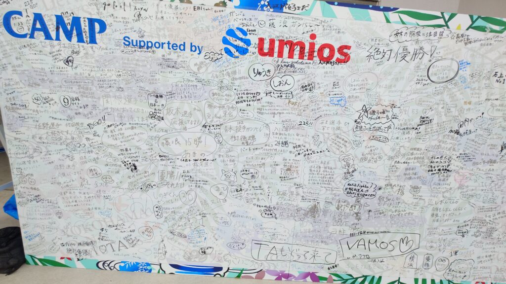 球場の外にはファンが応援メッセージを書くボードがあり、既にかなり埋め尽くされていた。この近くにいたら練習後の度会が現れて、よく見たら度会父と母が一緒にいた。そのままラグナガーデンホテルへ戻って行った。他の家族も見かけたし、キャンプに足を運んでいる家族も多いのかも知れない。
