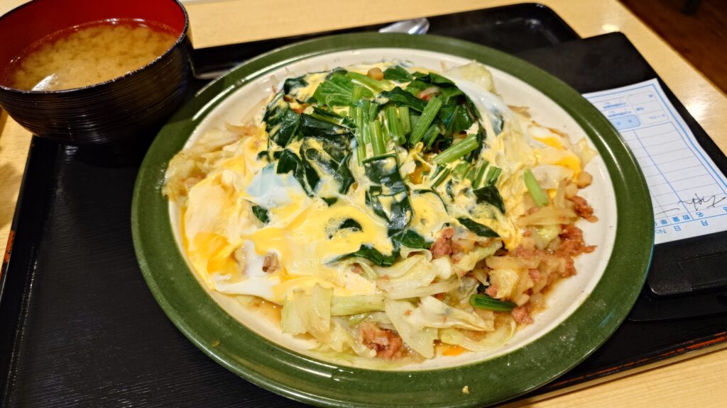 夕食は那覇に戻ってお食事処みかどのちゃんぽん。長崎のちゃんぽんとは違い、卵でとじた野菜炒めがご飯の上に乗っている料理。これはこれでかなり美味しい。